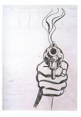 Devido a barulhos alheios (tia e avó a falar com o volume no máximo com aquele sotaque madeirense) não consegui ouvir muito bem o que se passou, mas deve ter sido algo do género: "Uma bala para ti, outra para mim" e só havia uma bala.... Ou então pode ter sido algo do tipo: "Eu fico com a arma e tu com as balas. Toma, agarra-as.... PUM!"...